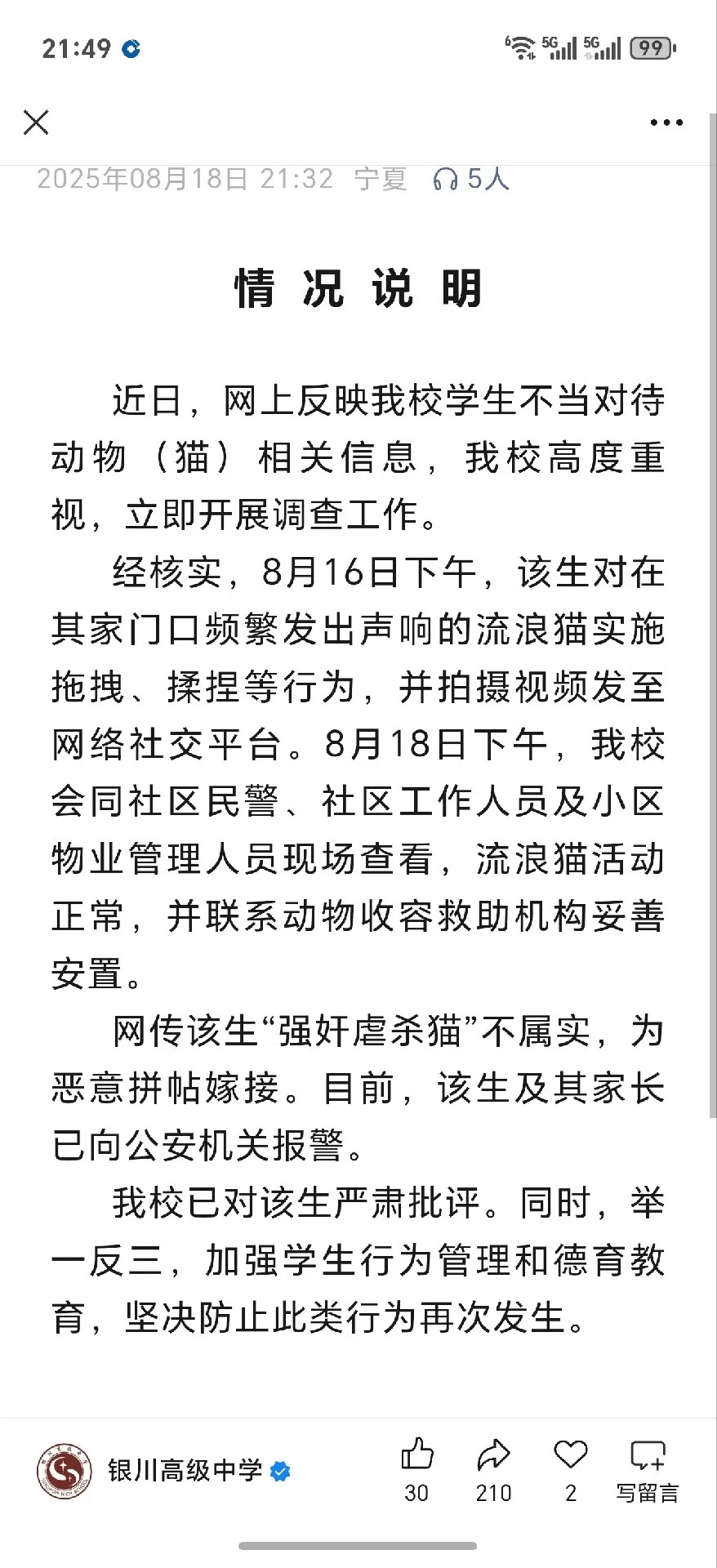 Li Hao Zheng school response
