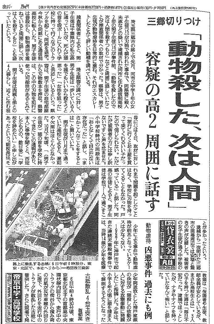 Yoshimasa Okaba said "I killed animals, next will be humans."