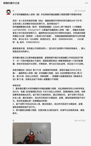 Weixin group chat exposing Zheng and demanding police action