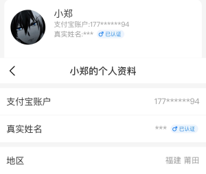 Zheng's Alipay account profile